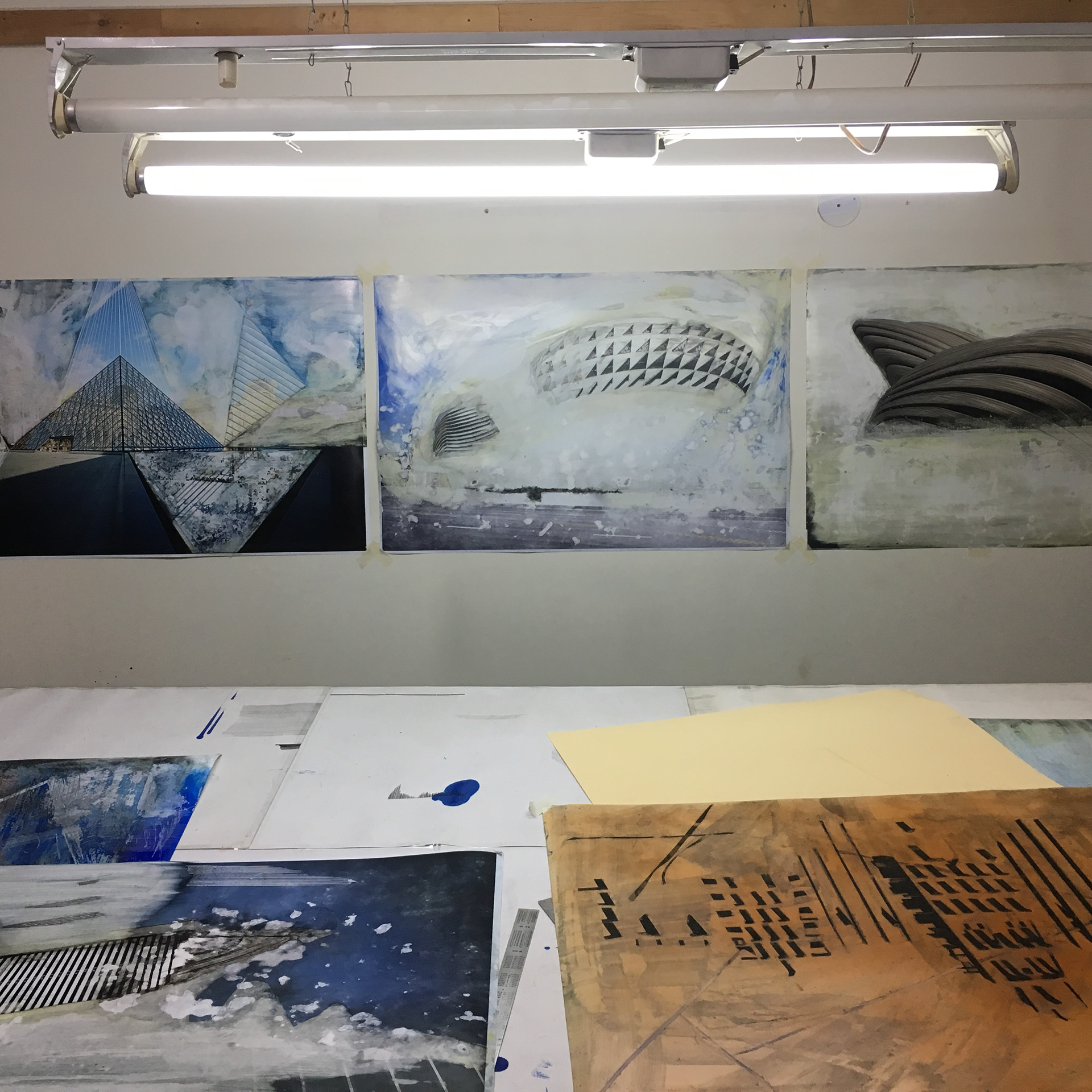 The work hinges on examining architectural forms, some real, some imagined by appropriating, redistributing and reconfiguring our external and internal perceptions of space and time.
